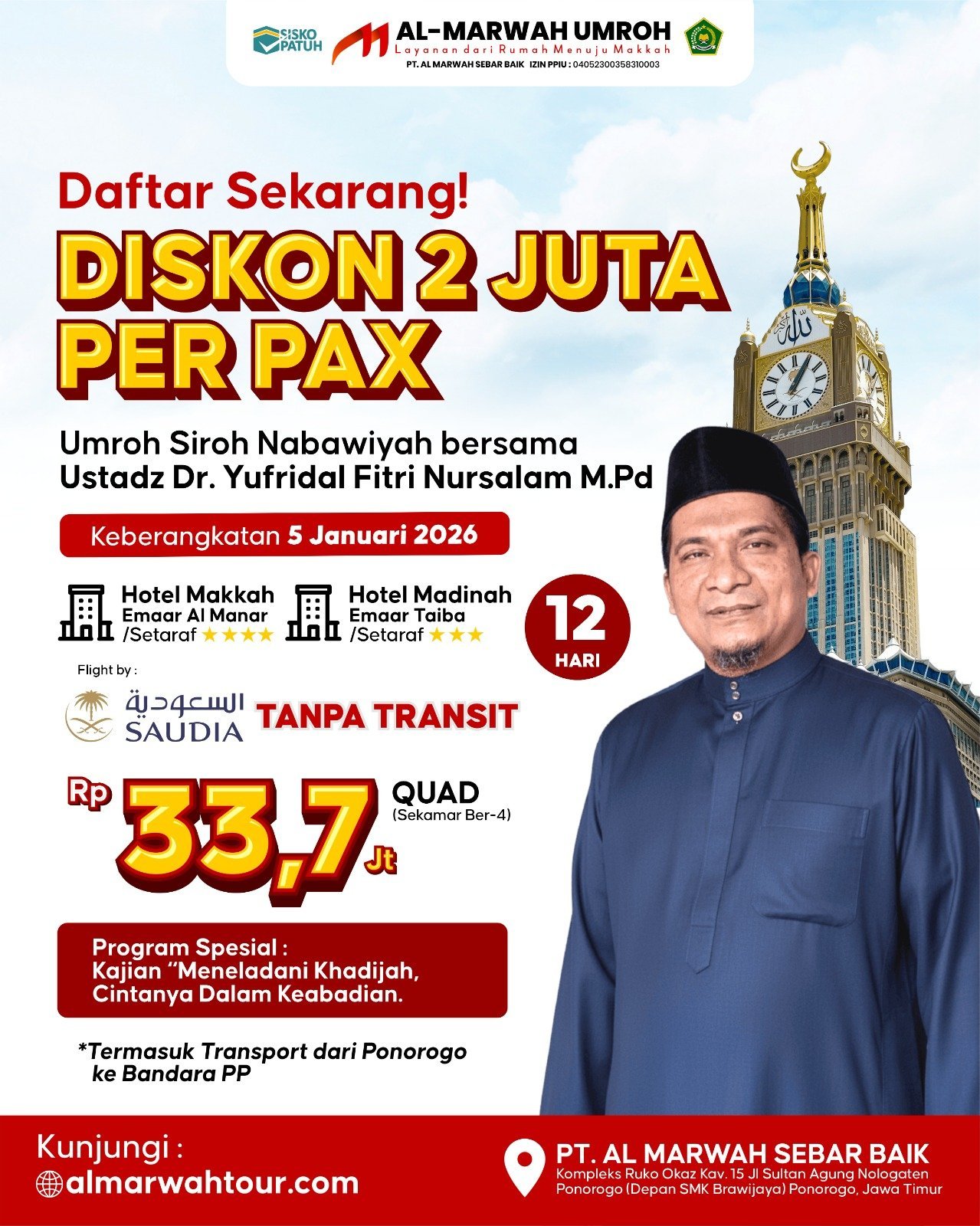 Al Marwah adalah biro Umrah & Haji berizin resmi PPIU. Kami hadir dengan layanan amanah, nyaman, dan profesional untuk mendampingi setiap langkah ibadah Anda.